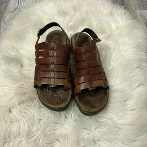 Born leather woven wedges inya rust in whiskey tan sz 10