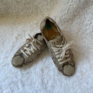 Born leather snake skin print cream and taupe color size 8 pre owned in good used condition normal wear see all pictures any questions please message. L2