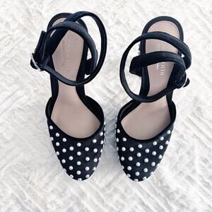 Born on Fifth for Antonio Melani Emily Black Velvet Pearl Platform Pumps