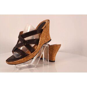 Born women's Brown Leather Cork Wedge Sandals Open Toe Strappy Design Size 8 M/W