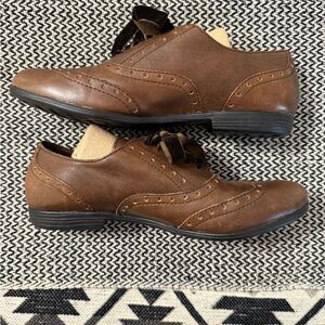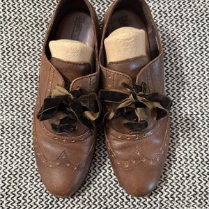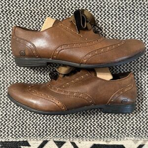 Born Arletta Wing-Tip Brown Leather Oxford Shoes with Ribbon Laces