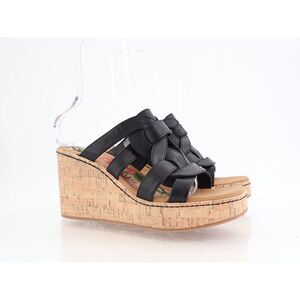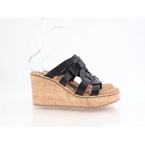 -Born BOC Women Cora Sandal Size 11 Black Wedge Platform Vegan Leather Slide Mule