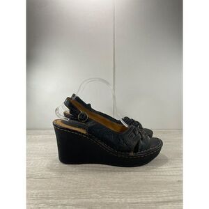 Born BOC Black Leather Wedge Heel Sandal Shoes Womens Size 10