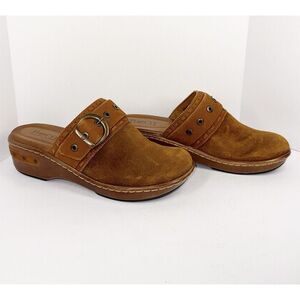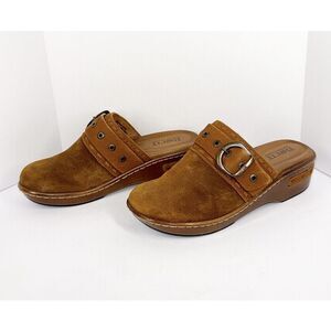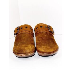 Born Banyan Clog Leather Mule Buckle Suede Studded Chunky Wedge Brown Y2K 7/38