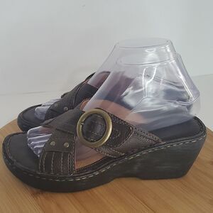 Born Brown Pebbled Leather Cross Strap Wedge Heel Sandals Buckle Size 7 W81086