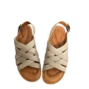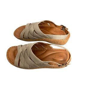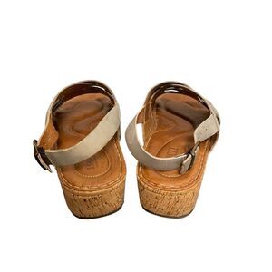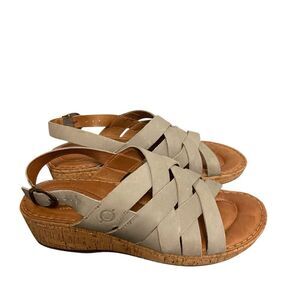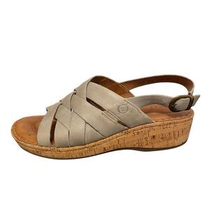 Born Laila Wedge Leather Cork Heel Sandals Blue Size 10