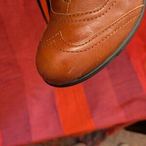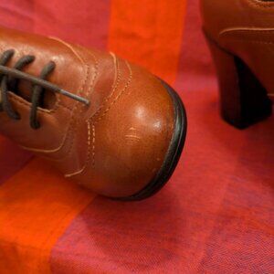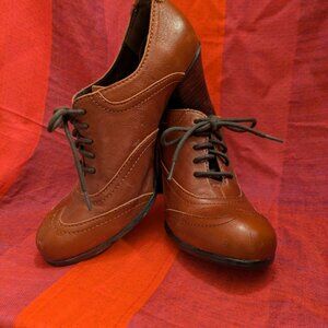 Classic 5-eyelet lace up leather oxford with a 3-inch chunky heel. Leather upper, cushioned insole. Women's US size 8/UK size 39. Good used condition. Please see close-up photos – there is one scuff mark on the front toe of each shoe.