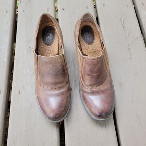 Born Sorla Brown Leather Chunky Heel Slip-on Western Cowgirl Boho Brogue Booties