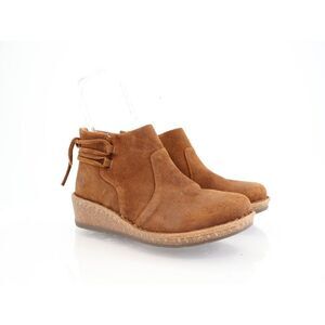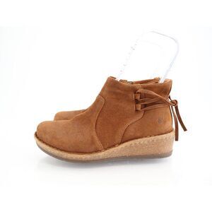 Born Viana Boots Suede Leather Laces Wedge Booties Brown Distressed Size 9.5