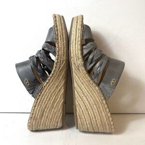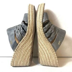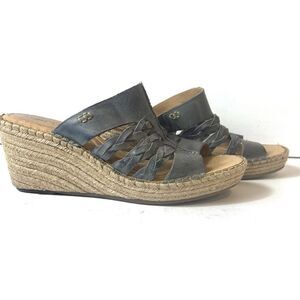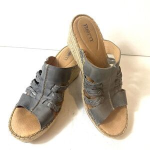 Born Womens 11 M Wedge Sandals Blue Gray Leather Slip On Comfort Casual Open Toe