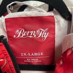 Men’s born-fly hooded zip jacket. Soda print. Sz 2xl.