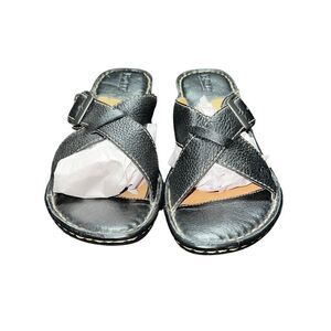 Born wedge sandal cris cross pebbles black leather size 8