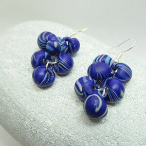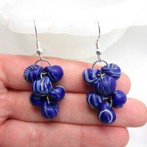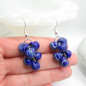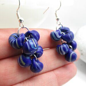 This listing is for the pair of Unicorne borosilicate glass teardrop cluster earrings pictured. They were hand made by me, are new, and have never been worn. They were made using US made boro glass teardrop beads and silver plated findings. They hang from nickel free sterling plated earwires. The beads it this pair a pretty blue with swirls throughout, these beads still had the tag and were named "Electric Sky."