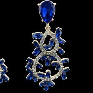 Borrowed & Blue Southern Living Royal Blue Gold Crystal Chandelier Gala Earrings