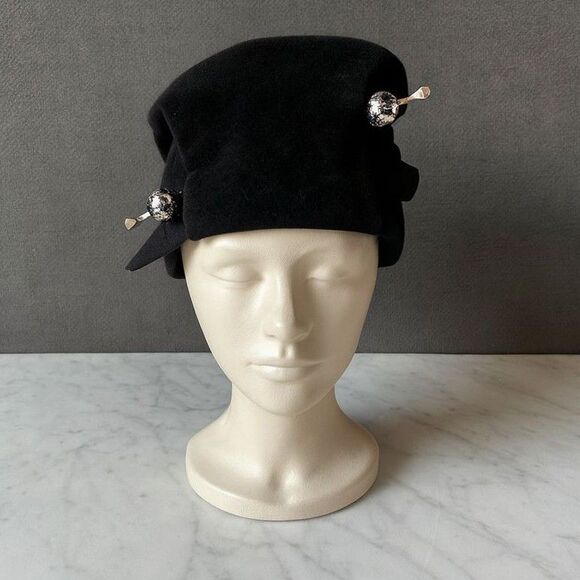 Borsalino Italy Black Wool Cloche Hat Women’s Vintage Sculpted Design Otti Moll