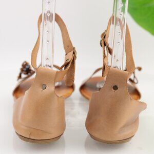 Borsalino Womens Sandals Size 41 10 Tan Leather Ankle Strap Boho Shoe Italy Made