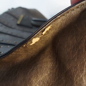 Defects --> Very cool and useful purse, but its missing a few rivets, not too noticeable. The stitching between interior pockets is a little loose.