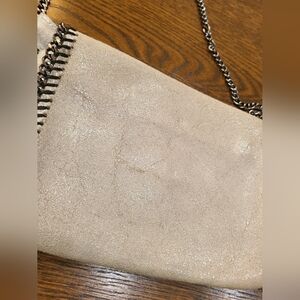 Stylish beige crossbody bag with a chic chain strap. Perfect for any occasion.The little dirty inside .