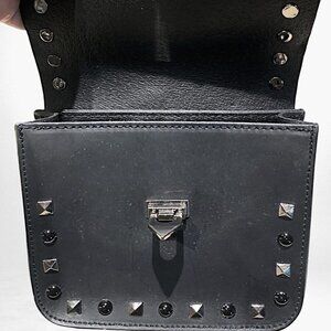 Borse in Pelle Silver and Black Studded Matte Leather Shoulder Crossbody Bag