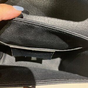 Black leather strap on the chain can also be detached to keep it one long chain strap!