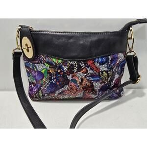 * Borse in Pelle Crossbody Shoulder Bag Stained-glass Butterfly Leather Made Italy