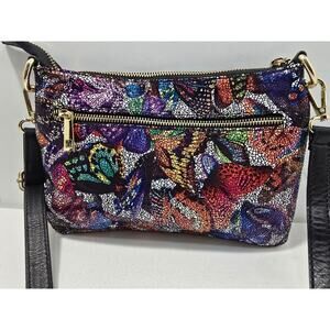 Borse in Pelle Crossbody Shoulder Bag Stained-glass Butterfly Leather Made Italy