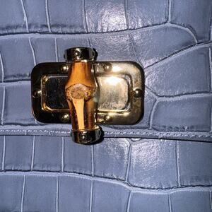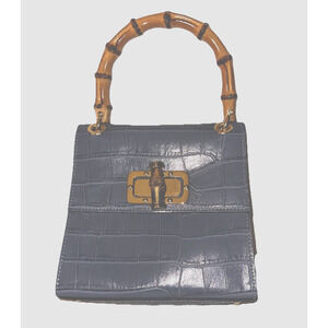 Borse in Pelle Mini Croc Embossed Italian Leather Handbag Purse Bamboo Handle