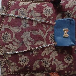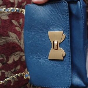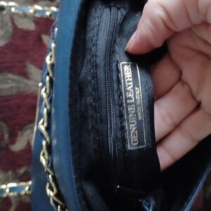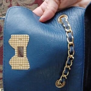 Borse in Pelle genuine leather bag blue with gold trim & chain