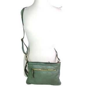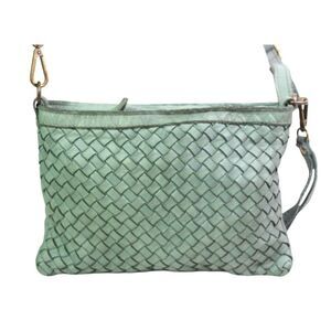 Borse in Pelle WOVEN GREEN GENUINE LEATHER X-BODY SHOULDER BAG CLUTCH WRISTLET