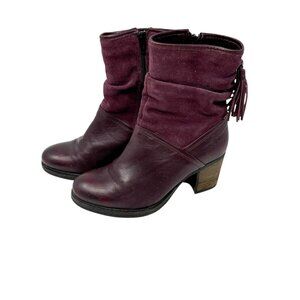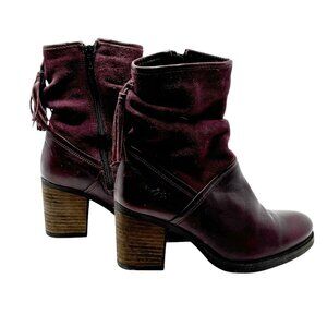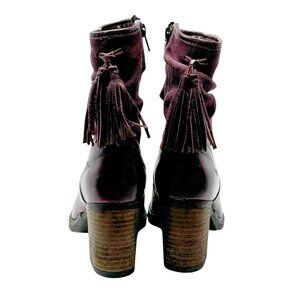 Bos & Co Burgundy Leather & Suede Heeled Ankle Boots With Tassel Zipper Size 8