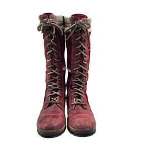 Bos & Co Glider Boot Size 39 Red Maroon Suede Lace Up Shearling EU 39 US 9