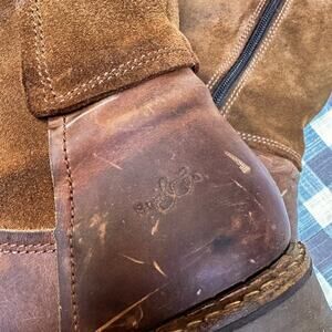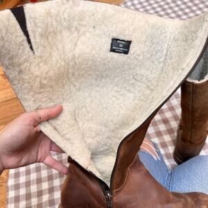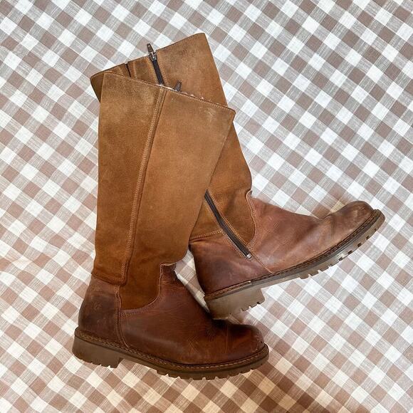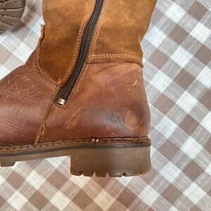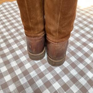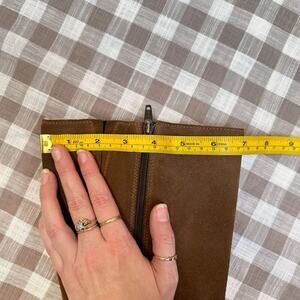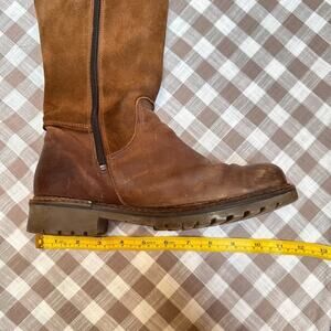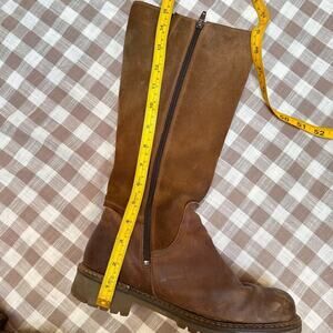 Bos. & Co. Hudson Waterproof Boot in Cognac / Redwood Gobi / Suede. Gorgeous boots at a nice level of worn-on and comfy. I wish these fit my calves because I would have worn them to death! From the Nordstrom website: "The merino-wool lining of this warm comfortable knee-high boot is backed by our Aquastop breathable, water-repellent membrane, while the chunky lugged platform gives you superior traction in wet or snowy weather." Side zip closure, timeless classic brown leather knee high boots. Equestrian, cottagecore, autumn, fall. Originally $280. Labeled size 38 which is the equivalent of a US 7. Check your measurements!