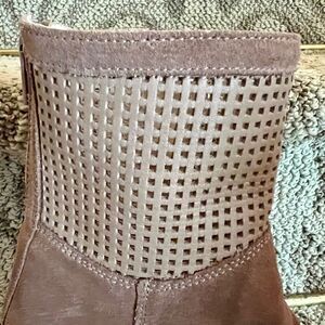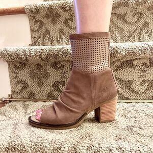 Bos. & Co. Celine Suede Open Peep Toe Boots Bootie in Taupe Size 37 or 7 EEUC