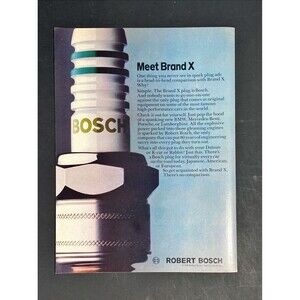 Bosch Brand X Spark Plugs "There is no comparison" Vintage Print Ad 1983 Car & Driver Magazine February 1983 About 8 x 11 Inches. Carefully shipped.
