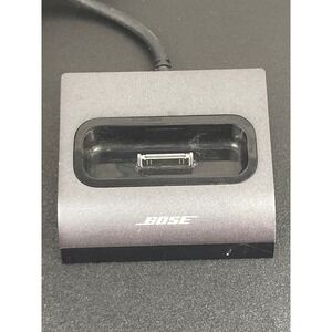 Genuine Bose Home Theater Dock, an ideal solution for charging and playing music from older generation Apple devices. This dock, P/N 318585-0011, features a classic gray finish and includes both the dock itself, an attached USB cable, and a white Apple 30-pin to Lightning adapter. Designed for use with Bose products, this dock connects seamlessly to your home theater system, providing both power and audio output for your iPod or iPhone. The dock is perfect for enjoying your favorite tunes while keeping your device charged, whether you're relaxing at home or hosting a small gathering. Also, this dock could be used for travel, to ensure your music always accompanies you.