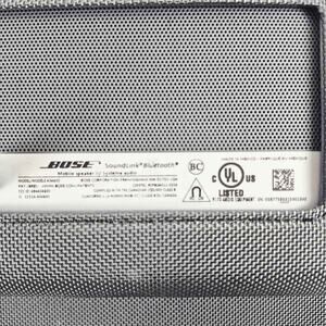 Bose SoundLink Bluetooth Mobile Speaker II, model 404600. Compact and powerful portable speaker designed for rich, clear wireless audio. Features a sleek silver and black design with an integrated protective cover that folds into a stand. Details: Model: 404600 Bluetooth connectivity for wireless streaming Auxiliary input for wired playback Rechargeable battery with included power adapter Compact design with folding cover/stand Color: Silver and Black Made in Mexico Condition: Pre-owned and in good working condition. Clean overall with some Noticeable wear on the case and edges of the stand from normal use. Tested for Bluetooth connectivity and sound quality. Power adapter included. Approximate Dimensions: 10 inches wide x 5 inches high x 2 inches deep