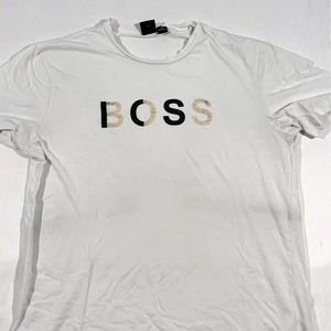 Boss Crew Neck White Monogram Logo Embossed Tee Cotton Short Sleeve T-shirt XL