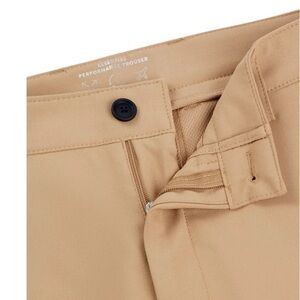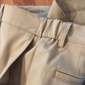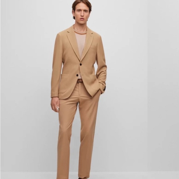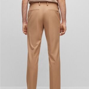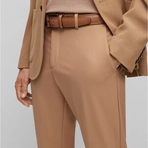 These Boss tan dress pants feature a sleek straight-leg cut and full-length design, perfect for formal occasions. Made from a lightweight fabric, they offer a polished look with crisp creases for a sophisticated appearance. Side elastic panels for a perfect fit! Never worn