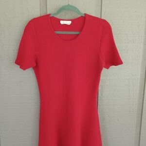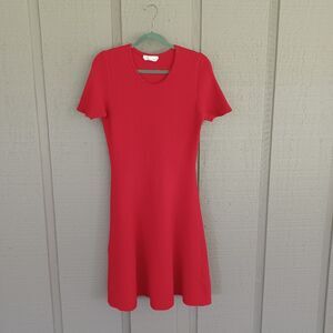 Boss Fleala Knit Fit And Flare Dress Size L Women Career Stretch Pullover Red