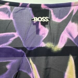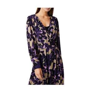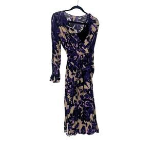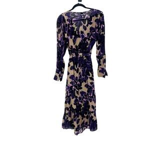 Boss Floral Tied-Waist Demaia Wrap Midi Dress Long Sleeve V Neck Purple Size 4
