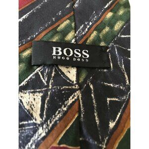 Boss Hugo Boss Black Brown Green Zigzags Triangle Stripes Italian Mens Silk Tie