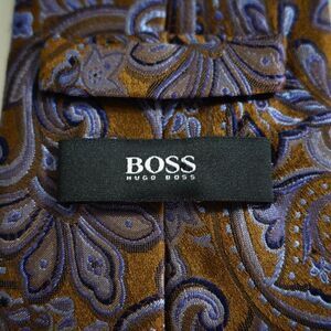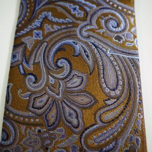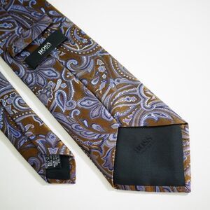 Boss Hugo Boss Brown Blue Paisley Floral Woven Silk Tie