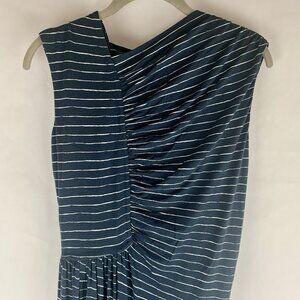 Boss Hugo Boss Dress XS Striped Navy Blue Coastal Asymmetric Midi Lined Stretch