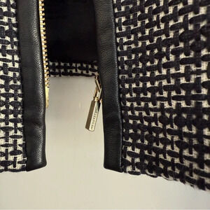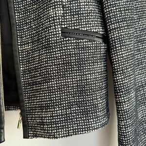 Boss Hugo Boss Koralie tweed zip jacket blue and white with leather trim Size: 2