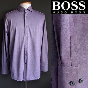Boss Hugo Boss Men’s Purple Performance Sharp Fit Dress Shirt Micro Pattern XL