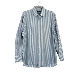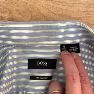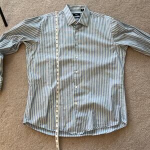 Boss Hugo Boss Mens Regular Fit Blue Green White Striped Button Up Shirt Sz 16
