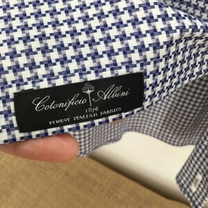 Very nice shirt from Boss Hugo Boss. Blue & white check print. This is a slim fit shirt. Made with the finest Italian cottons. Made in Turkey.