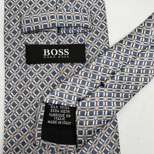 Boss Hugo Boss Neck Tie Mens Standard Size Blue Silk Square Patterned Italy