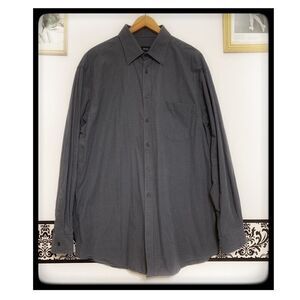 Dress shirt; Retrosaurusrex Vintage; big and tall; gray; career; Nordstrom; Rumania; 100% cotton; 90’s; 1990; sharp; men’s; long sleeved; collar; collared; date night; lux