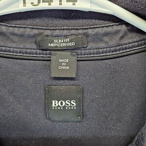 Boss Hugo Boss Polo‎ Shirt Men Size Large Blue Woven Short Sleeve